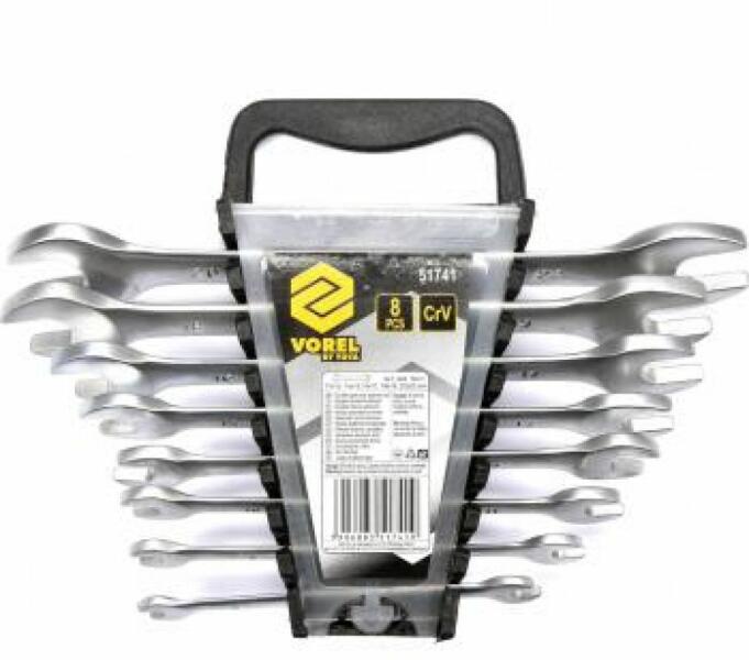 8 darabos, 6 – 22 mm-es, kiváló minőségű CrV acélból készült, átlátszó műanyag tokban tárolt, dupla csavarkulcs-készlet. méret 6 × 7; 8 × 9; 10 × 11; 12 × 13; 14 × 15; 16 × 17; 18 × 19; 20 × 22 mm