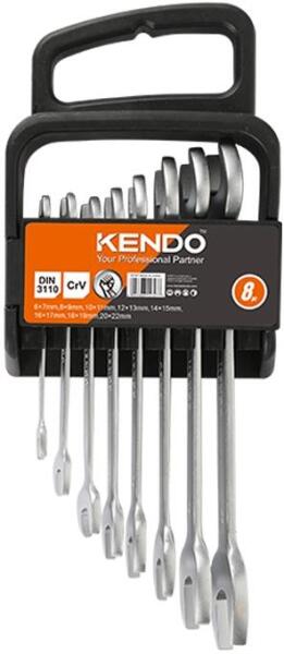 Kiváló minőségű, 8 részes KENDO villáskulcs készlet a járatos méretekben Műanyag tartóban könnyen szállítható és praktikusan tárolható Edzett króm-vanádium acélból készült az erő és a tartósság érdekében Korrózióálló bevonat DIN 3110 szabvány szerint gyártva