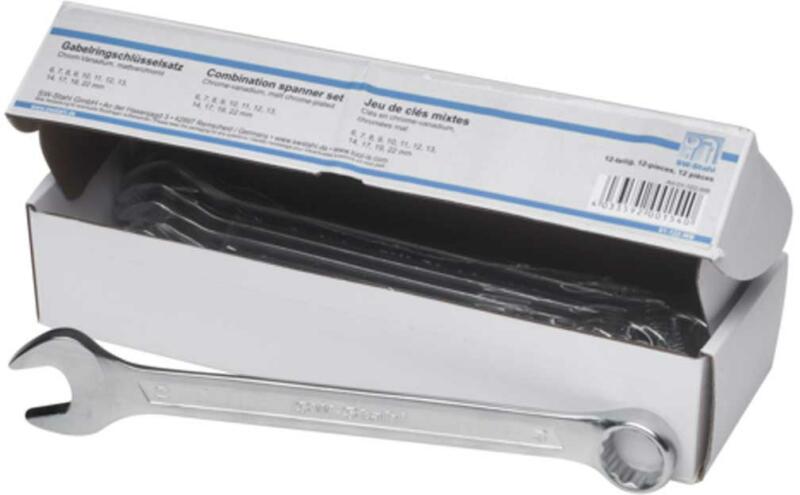 SW Stahl 01-122-WB csillag-villás kulcskészlet, 12db Műszaki adatok: -anyag: Króm-vanádium -felülete: matt króm Készlet tartalma: -6mm -7mm -8mm -9mm -10mm -11mm -12mm -13mm -14mm -17mm -19mm -22mm