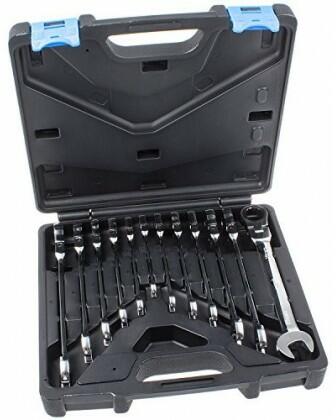 kiváló minőségű króm-vanádium ötvözött acélból készült, erős és tartós, tökéletes a villáskulcsokhoz; hatszögletű gyűrűs oldal racsnis mechanizmussal; 72 fogú racsnis mechanizmus; a racsnis mechanizmus nyitott végű kialakítása lehetővé teszi, hogy a villáskulcsot a csapokra hosszuktól függetlenül, a lapos hegyhez hasonlóan helyezzék fel; 15°-os szögben elhely
