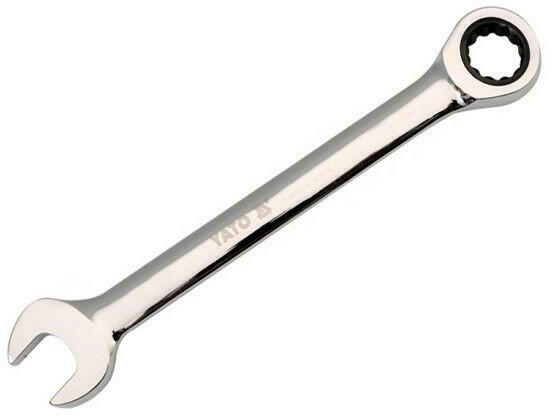 YATO racsnis villáskulcs A kulcs kiváló minőségű CrV6140 szerszámacélból készült, kiegészítő krómozott és polírozott felületkezeléssel. A szerszám 72 fogú racsnival van felszerelve, amelyhez egy speciálisan kialakított 12-es szögű szemet használnak. Az óramutató járásával megegyező és ellentétes irányú fordulatszám-tartomány és a minimálisan 5 fokos munkasz