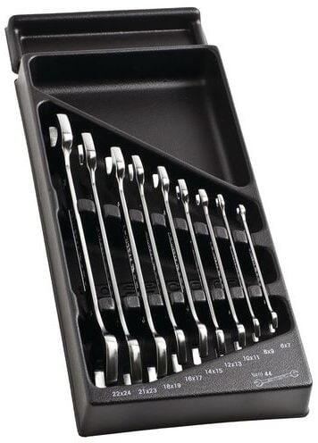 készlet 9 db kulcsot tartalmaz 6 x 7 – 8 x 9 – 10 x 11 – 12 x 13 – 14 x 15 – 16 x 17 – 18 x 19 – 21 x 23 – 22 x 24 mm.