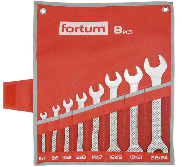 Fortum villás kulcs klt. 8db 6-24mm, 61CrV5, mattkróm; 6×7, 8×9, 10×11, 12×13, 14×17, 16×18, 19×21, 22×24mm, vászon tok FORTUM Fortum az abszolút szerszám. A legjobb minőségű anyagokból, szakértő tervezéssel hasznosítva a legújabb technológiákat. Minden összetevő többszörös, alapos tesztelésen megy át, melynek eredménye a minden körülmények között megbízható