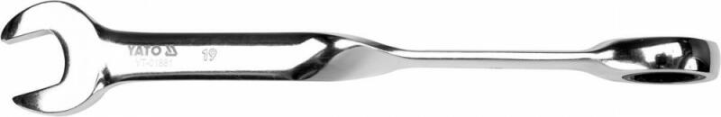 YATO YT-01881 19mm-es racsnis villáskulcs YT-01881 A villáskulcs egyik oldalán racsnis gyűrű, másik oldalán lapos hegy található. Ergonomikus csavart alakja megkönnyíti a munkát és nagy kényelmet biztosít, különösen erősen megragadt csavarok esetén. - a 90°-os csavart markolat tökéletesen illeszkedik a kézhez, így a csavarok meghúzásakor nagyobb nyomást ad át a kulcsra