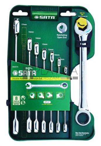 SATA Használja a SATA csillag-villáskulcs készletet igényes, folyamatos, profi, ipari igénybevételre! Nélkülözhetetlen elem a hatékony munkavégzéshez. Innováció! A kulcs mindkét része racsnizik, a nehezen hozzáférhető helyeken gyors és biztos újrafogás! Jellemzők: Biztos fogás: a Surface Drive racsni felületi kialakítás erős fogást biztosít a csavarokon 72 fogas finom