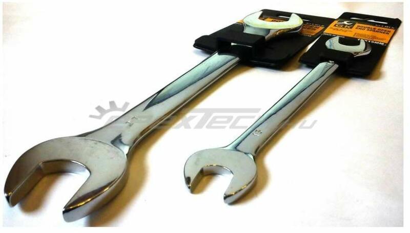 Csillag-villáskulcs. Metrikus, egyenes-szárú, mindkét vége 15°-kal hajlított. Villás vége horizontálisan, csillag vége vertikálisan. Markolata sima felületű. Teljes felülete fényesre polírozott. Méret: 34mm Eléri, vagy meg is haladja a DIN 3113 és ANSI szabványok előírásait.