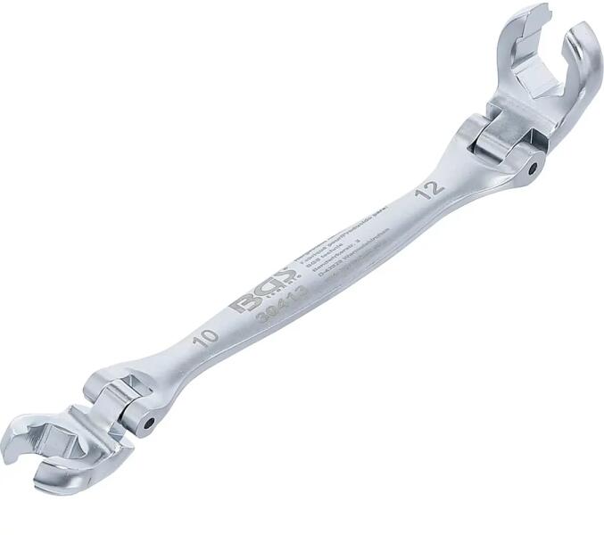 A nyitott csillagkulcs, amely fékvezetékekhez és csuklókhoz ideális eszköz. Ez a kulcs különösen hasznos a járműjavítás során, mivel lehetővé teszi a nehezen elérhető helyeken lévő csavarok és anyák könnyű megfogását és meghúzását. Specifikáció Anyag: Króm - vanádium acél Felület: Krómozott, matt 1. Kulcsméret: 10 mm 2. Kulcsméret: 12 mm Bruttó súly: 88 g