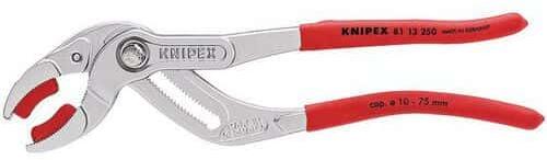 Krómozott fogó cserélhető műanyag pofákkal az érzékeny felületekhez. Kovácsolt és olajban edzett króm-vanádium elektromos acél. Műanyag bevonatú csúszásmentes fogantyúk. Precíz beállítás a különböző átmérőkhöz való optimális alkalmazkodás érdekében. Dobozpánt kialakítás 25 állítási lehetőséggel pozíciókat.
