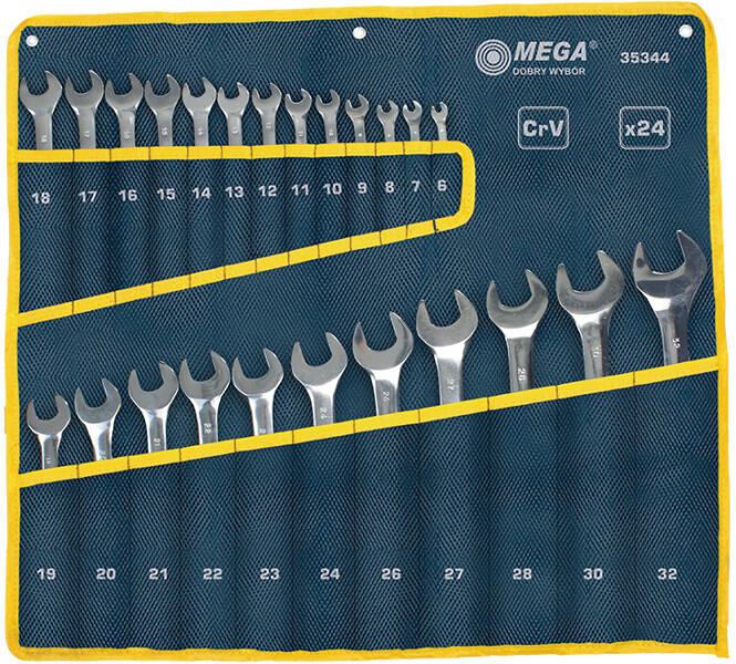Jellemzők: Bevonat: Matt króm Kovácsolt kulcs Maxi Drive profil: a laprészeken fejti ki hatását az élekkel szemben A csomag tartalma: 8, 9,10, 11, 12, 13, 14, 15, 16, 17, 18, 19, 21, 22, 23, 24 mm-es kulcsok