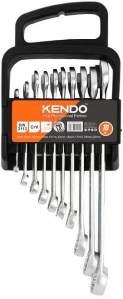 Kiváló minőségű, 10 részes KENDO csillag-villás kulcskészlet a gyakran használt méretekben Műanyag tartóban könnyen szállítható és praktikusan tárolható Edzett króm-vanádium acélból készült az erő és a tartósság érdekében Csillagfej 15° hajlásszöggel Korrózióálló bevonat DIN 3113 szabvány szerint gyártva