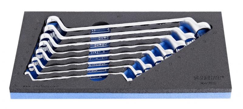 A Neo 09-370 racsnis gyűrűskulcsok, hosszú, 6 darabos készlet, 8-19 mm, puha tok 09-370 professzionális méretű kulcsok készlete: 8, 10, 13, 16, 17, 19 mm-es méretben. A szerszámok robusztus CrV acélból készültek, és egy praktikus puha tokban kínálják, amely lehetővé teszi az anyag feltekerését. A villáskulcsokat kivételes tartósság jellemzi. Igényes körülmények közö