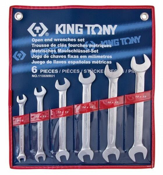 King Tony villáskulcs készlet 6db 8-19mm 6 db-os készlet Méretek: 1900 8 x 9, 10 x 11, 12 x 13, 14 x 15, 16 x 17, 18 x 19 mm Króm-vanádium ötvözött acél Krómozott Súly: 0,81 kg King Tony villáskulcs készlet 6db 8-19mm
