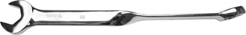 Acél csavart csillag-villáskulcs 32 mm kézreálló, ergonomikus kialakítással. Az ergonomikusan csavart forma megkönnyíti a munkát és kényelmet biztosít, különösen a szorosan meghúzott csavarok esetén. 90 fokban csavart forma tökéletesen illeszkedik a kézbe, nagyobb nyomást ad át a csavarkulcsra a csavarok meghúzásakor. 15 fokban döntött fej. Strapabíró acélból készü