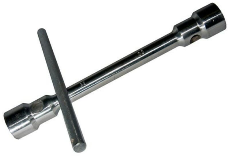 Kerékanyakulcs hajtószárral. Nagy fejméretének köszönhetően ideális szerszám a kiálló kerékanyák le és felhajtásához. Méret: