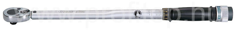 Duplabeosztású skála (Nm, Ft-Lb) Nyomatékérték beállítás a markolat forgatásával Nyomatékrögzí tés a markolat végén lévő reteszelő hüvellyel Kalibrálási tanúsítvánnyal Kalibrálási pontosság: ± 2% Szabvány szerinti pontosság: ± 4% Szerszámkofferben szállítva