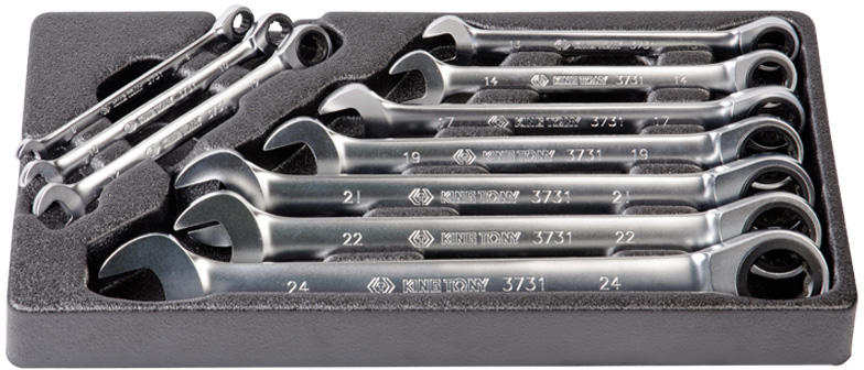 Ingyenes kiszállítással! King Tony racsnis csillag-villáskulcs készlet adatai Tálcás kivitel (385 x 187.5mm) Racsnis csillag-villáskulcs 3731M méretek: 8, 10, 12, 13, 14, 17, 19, 21, 22, 24mm King Tony racsnis csillag- villáskulcs jellemzői Polírozott króm felülettel 5 ° szögosztásos racsnival, 72 fog A King Tony racsnis csillag-villás kulcs króm-vanádium acélból készül, a