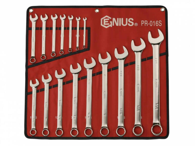 Tükörfényes krómozott bevonatú, colos csillag-villás kulcs készlet, mindkét felén 15°-kal hajlított. Méret: 1/4", 5/16", 3/8", 7/16", 1/2", 9/16", 5/8", 11/16", 3/4", 13/16", 7/8", 15/16", 1", 1-1/16", 1-1/8", 1-1/4" Tartozék: piros zsebes fali tartó Hosszúság: 130-430 mm Anyag: Króm-vanádium acél. A szerszámacélok legfontosabb tulajdonságai a keménység és a kopásállós