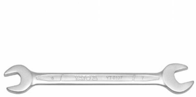 Csillag-villás kulcs 19 mmKlasszikus, 19 mm-es csillag-vilás kulcs króm-vanádium acélból. A lapos fej 15 °-ba van beállítva a kör feje pedig 15 °-ban van hajlítva, megkönnyítik a kulccsal való manőverezést és a kicsavarozást nehezen megközelíthető helyeken. Technikai paraméterek:Anyag: acél CrVMéret: 19 mm