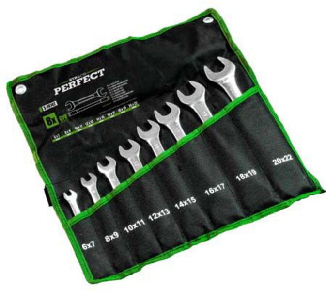 Méretek: 8, 10, 12, 13, 14, 17 mmMagas minőségű CrMo racsnisPolírozott, CrV Szállítási terjedelem: 6 db racsnis csillag-villáskulcs, Bliszterben