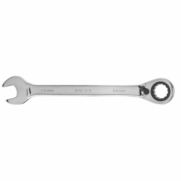 Neo racsnis csillag-villáskulcs. A csillagkulcs 72-fogas kilincsműve gyors, pontos munkát tesz lehetővé. A kiváló minőségű króm-vanádium acél sokéves tartósságot biztosít. A Neo márka a professzionális igényeket is kielégíti. Kombinált csavarkulcs 14 mm-es racsnisszal, CrV acél, 72 fogas racsnis
