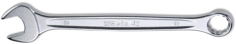 Csillag-villáskulcs. Recézett, dombornyomásos markolat a csúszásmentes fogásért. Egyenes-szárú, mindkét vége 15°-kal hajlított (villás vége horizontálisan, csillag vége vertikálisan). Teljes felülete fényesre polírozott. Méret: 24mm A termék megfelel a DIN 3113A előírásainak. An ISO 9001:2000 Company.