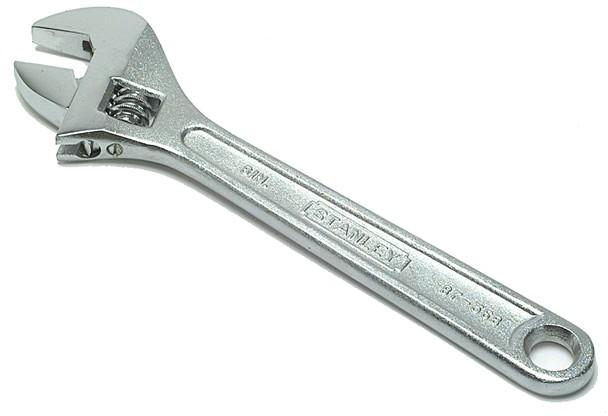 Stanley Állítható csavarkulcs 375 mm Króm vanádium acélból kovácsolva az optimális teljesítmény miatt A bütykös pofák a munkadarab biztos rögzítéséhez Polírozott fej, nikkel króm bevonat a korrózió elleni védelem 23 fokban hajlított fej a csavarok jobb hozzáférhetőségért Tippek (csavarkulcsokhoz, villáskulcsokhoz) A csavarkulcsokat hatékonyan használva fokozottan
