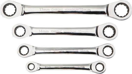 NEO racsnis csillagkulcs készlet 4 db kulccsal, 8 mm – 19 mm közötti méretekben. A kiváló minőségű króm-vanádium acél sokéves tartósságot biztosít. A 72-fogas kilincsmű gyors, pontos munkát tesz lehetővé. A szerszám minőségét bizonyítja a TÜV tanúsítvány és a gyártó által nyújtott 25 éves jótállás. A NEO márka a professzionális igényeket is kielégíti. R