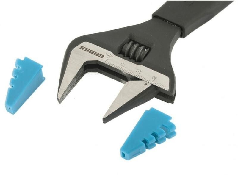 A Gross 15568 állítható csavarkulcs 200 mm hosszúsággal, vékony pofákkal és védőkkel. Lehetővé teszi a garat nyílásszélességének 30%-kal nagyobb beállítását, mint a szabványos modelleknél. A szerszám optimálisan alkalmas 40mm átmérőjű rögzítőelemek be- és leszerelésére. Széleskörű felhasználási területe van: vízszerelési munkák, kisebb háztartási javí