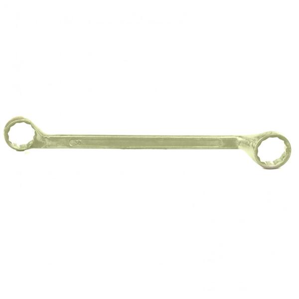 A gyűrű alakú profilnak 12 éle van, ami növeli a munkafelületek érintkezési területét és csökkenti a rögzítőelemek deformációjának kockázatát a telepítés során. A kulcs hajtóka munkarészei elmozdultak a fogantyúhoz képest, ami lehetővé teszi a nehezen elérhető helyeken történő munkát. Szénacélból készült. A kulcs munkarészének keménysége 41-46 HRC. A kul