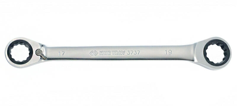 Metrikus racsnis villáskulcs, nem csúszik az anyákon, optimális biztonság. Kompakt racsnis mechanizmus, karral megfordítható. Jobb hozzáférhetőség. 5° és gyűrűs és nyitott vége 15°-ban ferde. Szatén króm bevonat.