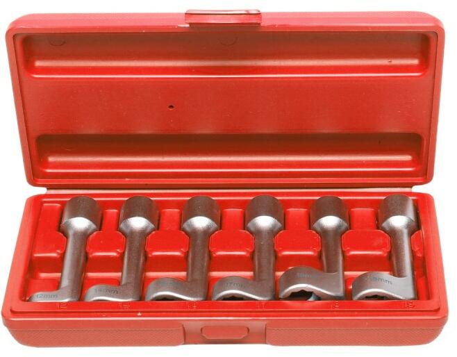 Nyitott, hajlított (90°-os) kulcsok a gyújtógyertyák beszereléséhez és eltávolításához nehezen hozzáférhető helyeken Könnyű hozzáférés a kábelek és érzékelők eltávolításakor 6 db. -os készlet: 12, 14, 16, 17, 18, 19 mm