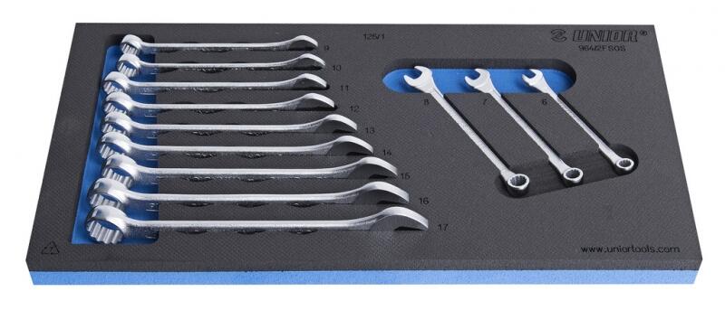felhasználás: csavarozott kötések oldásáratulajdonság: kombinált csillag-villás szettmérete: 8-17 mmméretek: 8-10-12-13-14-17anyaga: sárga cinkkiszerelés: műanyag tartóEAN kód: 4044996125855