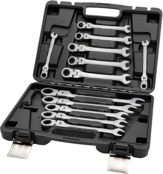 Leírás Ezekkel az eszközökkel a nehezen elérhető helyeken végzett munka többé nem jelent problémát. A szerszámkészlet 12 robusztus racsnis villáskulcsból áll, csuklós fejjel. A készlet a legnépszerűbb méretű csavarkulcsokat tartalmazza. Ideális személyes és professzionális használatra. A racsnis villáskulcsok használata lehetővé teszi a munkaidő csökkentését a ku