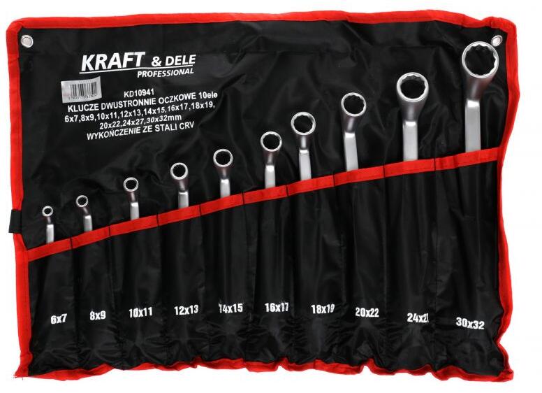 Hajlított csillagkulcsok 10db 6-32mm, falra függeszthető A készlet 10db hajlított csillagkulcsot tartalmaz 6 – 32 mm-es méretekben, CrV acélból. A kulcsok praktikus nejlon tokban vannak elhelyezve, amit a garázs, műhely vagy szerviy falára függeszthet. Technikai paraméterek:Méretek: 6x7, 8x9, 10x11, 12x13, 14x15, 16x17, 18x19, 20x22, 24x27, 30x32 mm