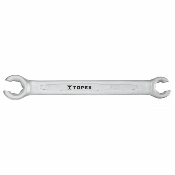 A Topex nyitott hollander kulcs atipikus alakjának köszönhetően ideális megoldás többek között fékcsövek, hidraulika csövek kicsavarásához. Kiváló minőségű, a szerszámnak hosszú élettartamot biztosító króm-vanádium acélból készül. A Topex márka ezermestereknek készül. Félig nyitott csillagkulcs, fékcsőkulcs, 11x13, CrV acél
