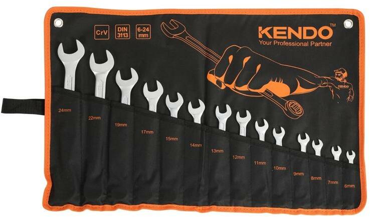 Kiváló minőségű, 14 részes KENDO csillag-villás kulcskészlet a gyakran használt méretekben. Műanyag tartóban könnyen szállítható és praktikusan tárolható. Edzett króm-vanádium acélból készült az erő és a tartósság érdekében. Csillagfej 15° hajlásszöggel Korrózióálló bevonat DIN 3113 szabvány szerint gyártva
