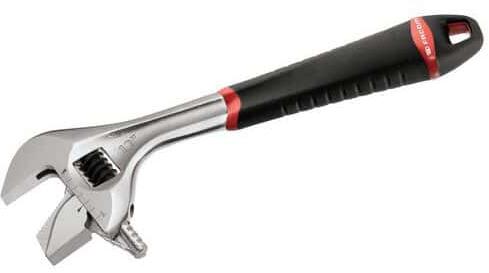 Állítható kétoldalas pofás kulcs. Könnyű króm test. Soft Grip fogantyú puha anyagból. Lapos oldal a munkadarabok sérülésének elkerülése érdekében. Finom fogazott oldal a csövek és egyéb alkatrészek erős meghúzásához (jó tapadás és nagy nyomaték). Vékony pofaprofil a jobb hozzáférhetőség érdekében. 22°-os dőlésszögű fej a jobb hozzáférés érdekében. Ext