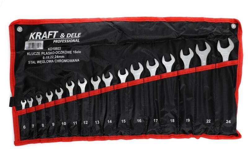 Csillag-villáskulcs készlet, felakasztható tokban 16db 6-24mmCsillag-villáskulcs készlet króm-vanádium acélból. Praktikus nylon tokban vannak elhelyezve az egyszerű tárolásért, szállításért, fel lehet függeszteni műhelyben vagy garázsban. Technikai paraméterek:Darabszám: 16 dbMéretek: 6, 7, 8, 9, 10, 11, 12, 13, 14, 15, 16, 17, 18, 19, 22, 24 mmSúly: 1,22 kg