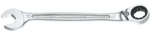 Metrikus racsnis villáskulcs, nem csúszik az anyákon, optimális biztonság. Kompakt racsnis mechanizmus, karral megfordítható. Jobb hozzáférhetőség. 5° és gyűrűs és nyitott vége 15°-ban ferde. Szatén króm bevonat.
