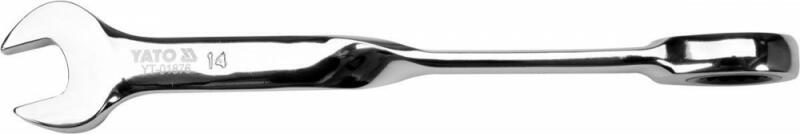 YATO YT-01876 14 mm-es racsnis villáskulcs YT-01876 A kulcs egyik oldalán racsnis gyűrű, a másik oldalán lapos hegy található. Ergonomikus csavart alakja megkönnyíti a munkát és nagy kényelmet biztosít, különösen erősen megragadt csavarok esetén. - a 90°-os csavart markolat tökéletesen illeszkedik a kézhez, így a csavarok meghúzásakor nagyobb nyomást ad át a kulcsra, ke