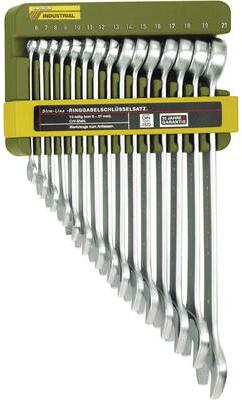 SlimLine gyűrűs-villás kulcskészlet 15 részes Minden darab kalibrálva és végellenőrizve Igényesen kikészített felület Gondosan edzve és nemesítve 6 - 21 mm DIN 3113 és ISO 3318 szerint A gyűrűs oldal 15°-os szög alatt áll Jellemzők: Gondosan edzve és nemesítve · Igényesen kikészített felülettel (2x nikkelezve, 1x krómozva) bőrbarát végső kikészítéssel · Jól o