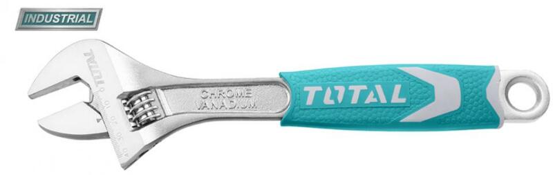 Állítható villáskulcs 300mm / INDUSTRIAL (THT101126) A TOTAL THT101126 Professzionális síkcsavarhúzó használható különböző átmérőjű rögzítő kötések felszereléséhez és lebontásához. Az eszköz hossza 300 mm. A fogóméret állítható 0 és 41 mm között. A munkarész króm-vanádium acélból (CR-V) készült, amelyet egy anticorrosive bevonattal borítottak, így a ku