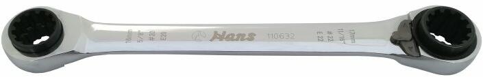 Hans multifunkciós irányváltós, kétoldalas racsnis csillagkulcs jellemzői Multifunkciós irányváltós csillagkulcs Kétoldalas racsnis csillagkulcsok 110632 Tükörpolírozott kivitel