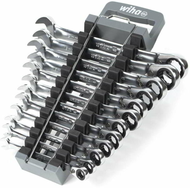 Növeli hatékonyságát: Könnyed csavarozás a finoman fogazott gyűrűs racsninak köszönhetően. Fokozza az Ön rugalmasságát: Jobb-/balmenet átkapcsoló karral beállítható. Egyszerűbbé teszi munkáját: Praktikus tartóval a rendezett tároláshoz és az egyszerű szerszámkivételhez. Növeli hatékonyságát: Jobb hozzáférhetőség szűk helyeken a 15°-os pofapozíciónak és a