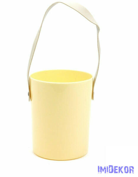 Átmérője kb 10,5 cm, magassága 13,5cm + fül. Műanyag kaspó bőr füllel