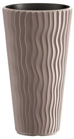 Tedd beltéri vagy kültéri növényeidet a Prosperplast SANDY SLIM magas virágtartóba. Vagy ültess bele fiatal palántákat. A cserép minőséges műanyagból készült. A homokdűnékre emlékeztető hullámos textúrájú kialakításának köszönhetően tökéletesen díszít minden szobát, verandát, erkélyt és télikertet. Főbb jellemzők Külső és beltéri használatra egyaránt