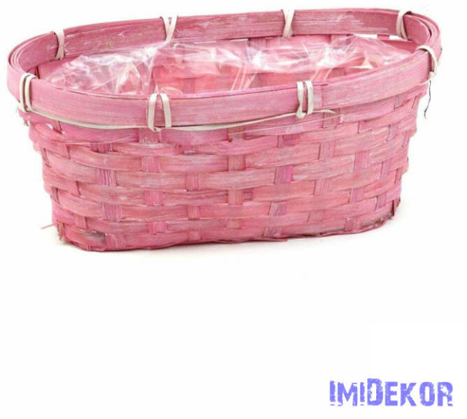 Bélelt ovális bambusz kosár, kb 24x14,5x10cm