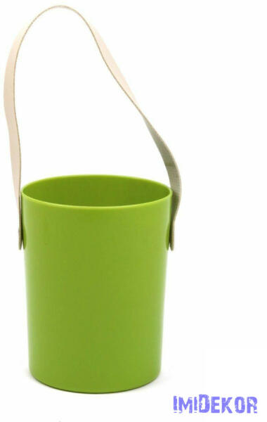 Átmérője kb 10,5 cm, magassága 13,5cm + fül. Műanyag kaspó bőr füllel