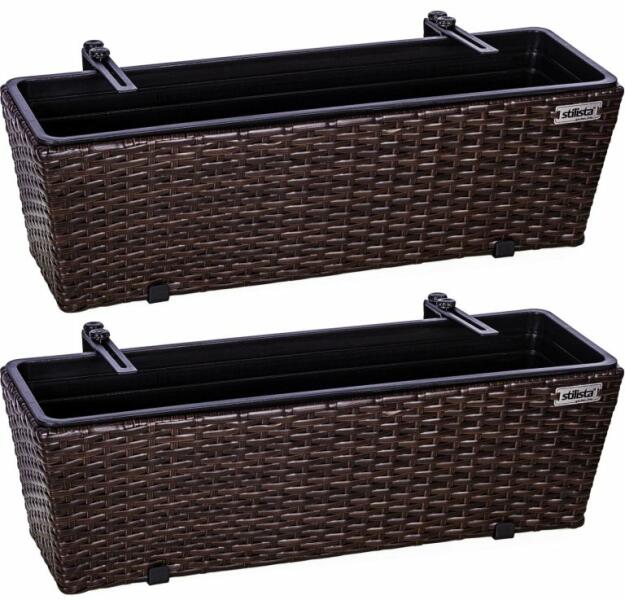 A szintetikus szál poliratán lenyűgöz kiváló tulajdonságaival. Ellenáll az időjárásnak, az UV sugárzásnak, taszítja a szennyeződéseket és könnyen tisztítható. A levehető műanyag betéteknek köszönhetően a virágcserepek ültetése egyszerű. A szállítás tartalmaz egy állítható fém csuklópántot a virágcserepek erkélyhez vagy korláthoz való rögzítéséhez. Ter