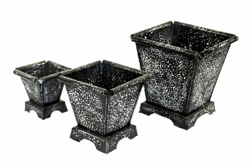 Egyedi stílust adhatunk virágainknak a képen látható 3 db-os fém kaspó szettel, mely bel- és kültérben egyaránt használható. Méretek Nagy: 22 cm x 22 cm x 30 cm Közepes: 22 cm x 20 cm x 20 cm Kicsi: 16,5 cm x 13 cm x 13 cm A kaspókat saját dobozukban küldjük.